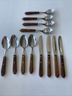 TOWN & COUNTRY WOOD HANDLE Stainless Flatware Lot 12 Pcs Made In USA