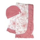 Knit Stroller Blanket with Trim Detail and Baby Hat 100% Organic Cotton for I...